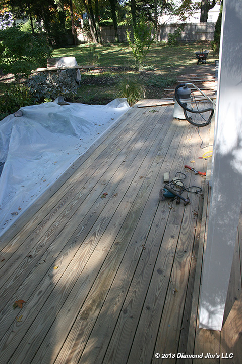 The pressure treated wood next to the koi pond did not have paint on it. It was cleaned, sanded and buffed.