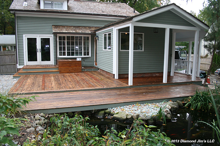 Another view of the completed deck freshly oiled. You should not walk on a deck for two days after oiling as you don’t want to track oil into your house. After that time you may put your chairs and table back on the deck.